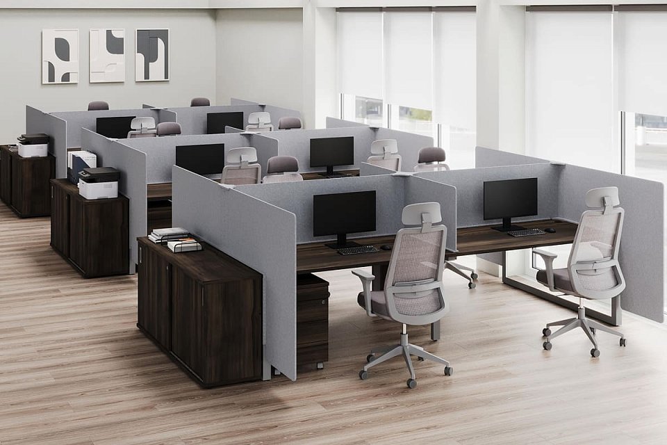 custiX предоставляет возможность изящного решения для создания личного пространства в офисе с бенч-компоновкой. Наша специальная система экранов с легкостью трансформирует множество рабочих столов в изолированные зоны, обеспечивая комфорт и конфиденциальность. Выбирайте свой вариант исполнения: от компактных, органично продолжающих линию столешницы, до полноразмерных конструкций, которые надежно защитят ваше рабочее место.