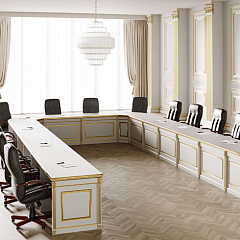 Функциональность стола тоже важна – участники заседания часто проводят по несколько часов в одном помещении, поэтому должно быть достаточно места для размещения всего необходимого.